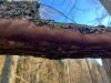 Atradu arī šo paraudziņu, pašā kastes apakšā. Perfekti notīrīta pakājes plēksnīte uz koksnes, viss pārējais ragansviests pārvērsts smalkā pulverī. Izdevās atrast arī nebojātas sporas.
