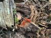 Satrūdējusi kritala mežā, nav dēļi. Iespējams, egle, jauktu koku mežs.