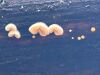 Pieliku vēl četrus foto: augļķermeņi no metāliskās krāsas paliek brūni; atradu kaut ko līdzīgu kolumellai, bet stiprāk uzpūšot tā "lodīte" izvēlās arā, atstājot iedobi; kātiņa galā palika neliels paplatinājums.