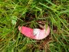 Rūtiņa ir 1mm, par kājiņu es arī nevaru saprast - drīzāk nav nekā ir :) Nobriedušas ir netīri pelēkbaltas ar ļoti trauslu perīdiju. Pagaidām daivās neplaisā, grūti pateikt, kā plaisā, ja nepieskaras augļķermeņiem. "Kraukšķīgs perīdijs", tas ir kā? Pie mazākā pieskāriena tas saplīst gabaliņos, bet vai kraukšķ? :) Sarkans nav, iekšpuse perīdijam balta, bet pskatīšos vēl.