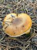 Uz trupējuša koka, pa daļai smiltīs kāpās. Piekopoju bildi. Sākumā pagāju garām, likās mandarīna miza.