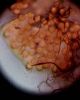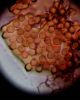 Šis bij pārsteigums. Ievācu bez cerībām, jo sakaltis. Hipotēze par gļotsēni, jo gļotaina apmale. Tā kā balts, sporu nebūs, neko zaudēt nevar, ielēju kastītē ūdeni (pat ne salvetes, vnk "dzīvu ūdeni") un aizmirsu. Krāmējoties pa kastītēm, atveru un - pārsteigums. Plānotā gļotsēne izaugusi 100x lielāka :D un izrādās sēne, kas mitrumā beidzot uzbriedusi. Kā tādu mikroskopēt, gan nezinu, jo tur tak receklis.. Tā ka vai pēdējie 2 mikro-foto par tēmu - nezinu.