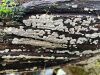 Šis bij pārsteigums. Ievācu bez cerībām, jo sakaltis. Hipotēze par gļotsēni, jo gļotaina apmale. Tā kā balts, sporu nebūs, neko zaudēt nevar, ielēju kastītē ūdeni (pat ne salvetes, vnk "dzīvu ūdeni") un aizmirsu. Krāmējoties pa kastītēm, atveru un - pārsteigums. Plānotā gļotsēne izaugusi 100x lielāka :D un izrādās sēne, kas mitrumā beidzot uzbriedusi. Kā tādu mikroskopēt, gan nezinu, jo tur tak receklis.. Tā ka vai pēdējie 2 mikro-foto par tēmu - nezinu.