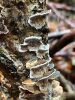 Skujkoks nav par tuvumā. Ir tikai lapu koki - lazda, kastanis, ābelītes. Otrpus celmam (D pusē) lejasdaļā, ko pamanīju pirmo, arī bija kaut kas no šim līdzīga, bet tik izsporojies, ka palicis tikai paliels brūns sporu pleķis. Intriga pavērot nākamgad.