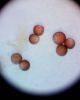 Un ja ir Badhamia, tad vajag arī uz stikliņa bez virsstikliņa mazos palielinājumos (lai nesaslapina okulāru) paskatīties, vai sporas negrupējas, pa divi vai vairāk. Te sporas izskatās ļoti apaļas, drīzāk negrupējas, bet paskatīties tāpat ir vērts.