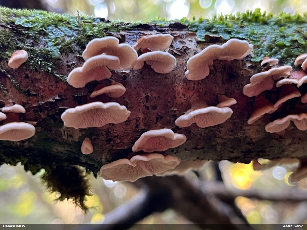 Varētu būt P.album, bet netipiski šķita, ka auga arī uz sūnām un vertikāli, ne kā pierasts redzēt uz koksnes un nokareni.