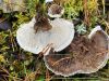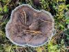 Ļoti neparasta kombinācija - īsa melna kājiņa un apaļīgi plakana galviņa. Un uz nobirām. Gļotsēņu atslēga kā cerīgāko piedāvā nabas jāņodzīti, bet tai neredzu "nabiņu" un nobirām arī nav raksturīga. Šķirstot noteicēju, visas līdzīgās atduras pret pēcsniedzītēm, kas gluži nevarētu būt :D Olītēm melnas kājiņas nav tipiskas (ja tiešām melna), tad paliek lampītes. Par garkājas lampīti (kā blakus) vismaz pagaidām šo nosaukt grūti ;) Atliek cerēt, ka nobriedīs tiktāl, lai mistēriju izdotos atrisināt :)