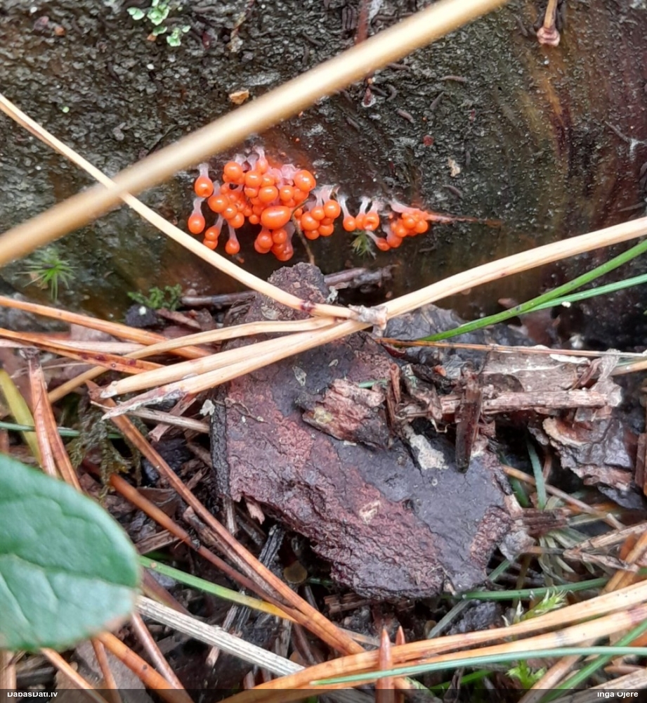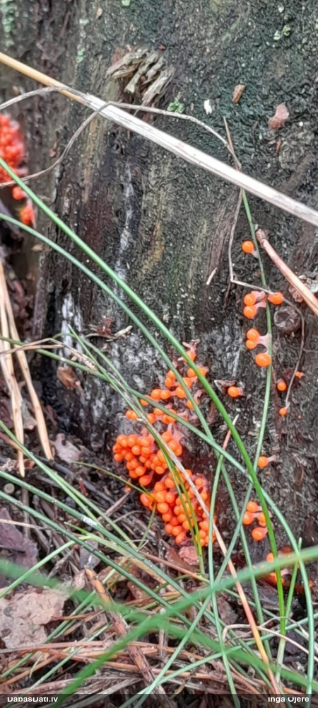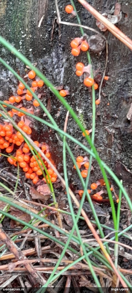 Hmm, nepievērsu tam uzmanību, bet tas interesanti, paldies! Vispār izskatās pēc vālenītes, ne kūlītes, speciāli salīdzināju aprakstus ar Stemonitis splendens, bet mikroskopiski tomēr atbilst visām kūlītes pazīmēm, un abas mikroskopētās kūlītes - vienādas. Tur kāds skujkoks blakus neaug?