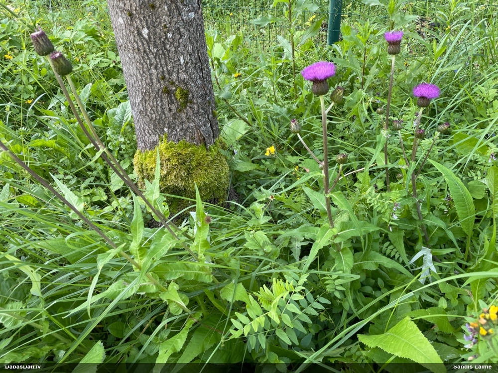 Mežiņā pie mājām, kļavā ieurbtā caurumā (sulām).