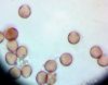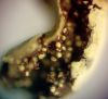 Žēl, ka mikroskopijā neviens kapilīcija mezgls (un vnk pavedieni) nav "aizķēries" (bet varbūt citos foto ir?), jo varētu būt F.licentii. Ovālo sporu gan jau arī netrūkst, kam šādā stadijā varētu arī nepievērst uzmanību un nesamērīt (bet būtu vajadzējis).