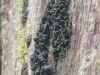 Laikam jau drošāk būs, ja es to paraugu dabūšu pie sevis. Viena non svarīgākajām pazīmēm ir 1 mkm garas adatiņas sporām. Un te es tās pārliecinoši neredzu. Par citām pazīmēm salīdzinu Lamproderma muscorum -- L.violaceum/L.nigrescens (kam arī kapilīcijs galos gaišāks): Sporas 10-12 mkm (Eiropas versijai līdz 14 mkm) -- 8-10 mkm (šajā novērojumā drīzāk 10-12 mkm, kas labāk atbilstu L.muscorum Amerikas versijai) Galviņas diametrs 0,3-0,5 mm -- 0,4-1 mm (šajā novērojumā 0,55-0,65 mm) Kopējais garums 0,6-1 mm -- 0,6-1,8 mm (šajā novērojumā līdz 0,9 mm). Ja sporām būtu skaidri redzamas adatiņas, tad es pieņemtu drīzāk L.muscorum ideju, bet šobrīd šaubos.
