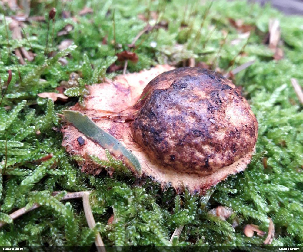 Šim vajadzētu būt licentii. Papildus tam, ka oktobris (rufas tipiski ir agrā pavasarī), sporu masa ir tumšbrūna (ne sarkanbrūna kā rufai), pakāje plaši stīgo (rufa, šķiet, nestīgo, tāda gluda neliela apmalīte), bet vēl arī tās baltās "pūciņas". Riskēju minēt, ka tas baltais ir kapilīcijs, jo licentii parasti ir bagāts ar kapilīciju, ka pirmā brīdī tāds izjucis izskatās kā sapelējis, bet nav.