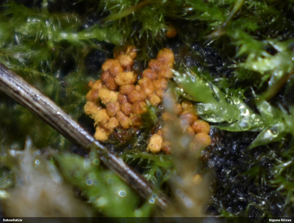 Sveiciens! Atradu paraudziņu kopējā krājumā. Izskatās nobriedis, tika turēts sausā kastītē, sklerociju neatgādina. Pievienots papildus augļķermeņu foto. Būtu jāpieķeras mikroskopēšanai. Augšana uz sfagniem purvā varētu nebūt tā biežāk novērotā parādība..