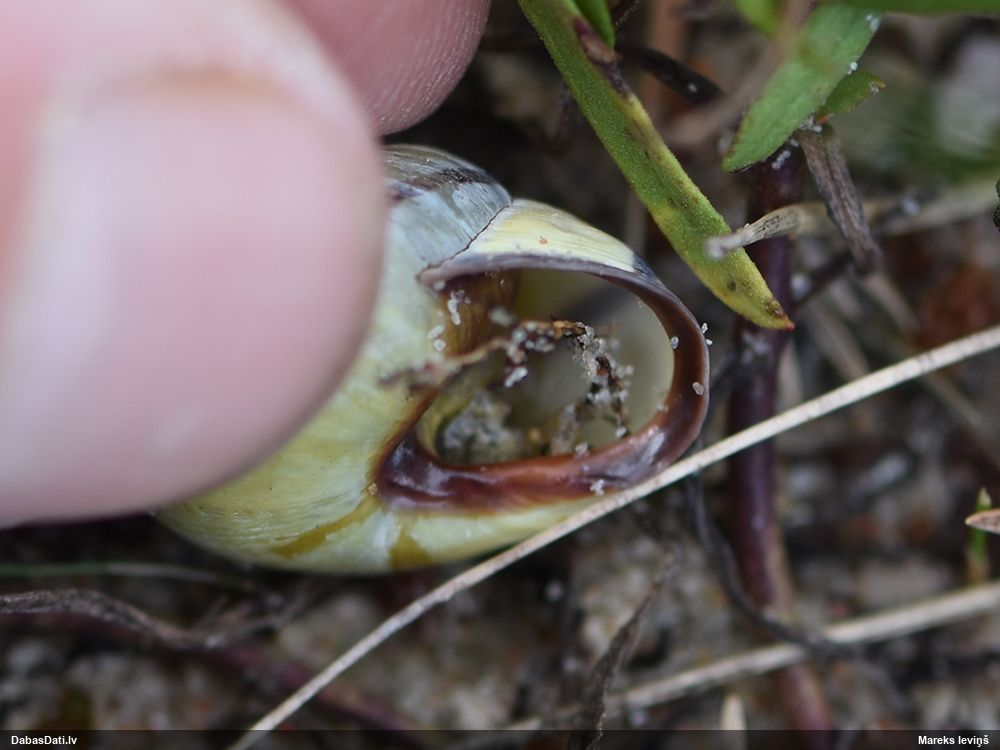 Pēc foto noteica Arturs Stalažs (nepieaudzis, pēc raibumiem nevar sajaukt ar Helix pomatia mazuļiem)