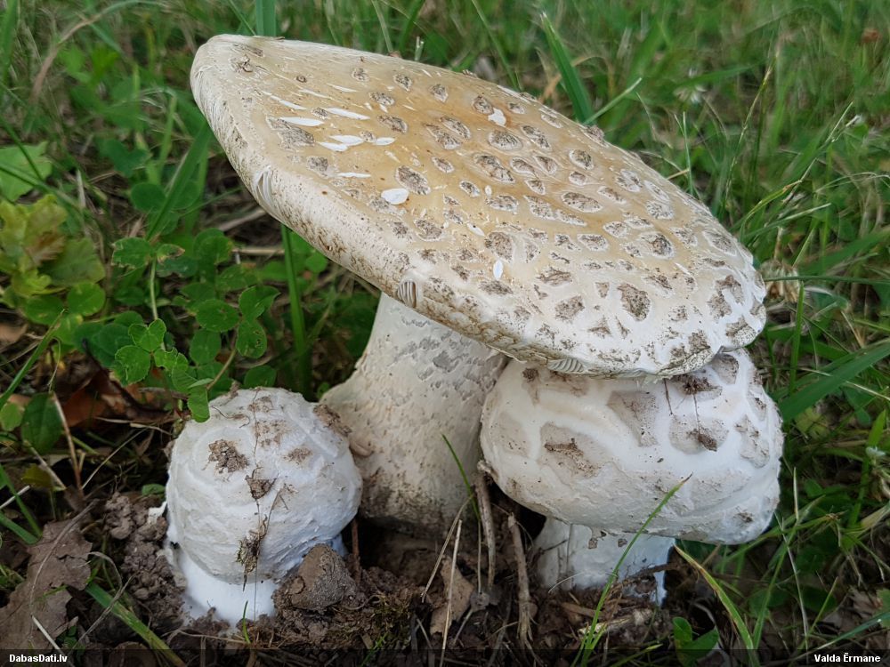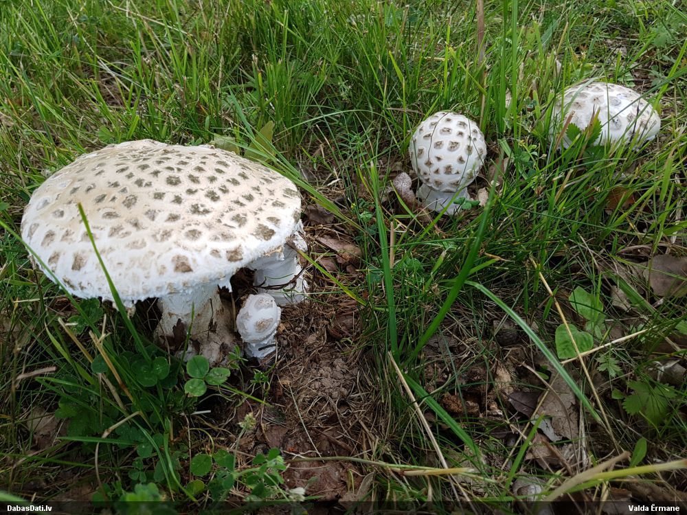 Pirmā bilde- šūnu daudzpilīte (sporu mākonis sarkans un staipās), otrā un trešā - kazeņu daudzpilīte (gara kāja, sporu mākonis brūns).