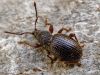 Jāredz tuvāk (kaut vai izkadrēts šis pats attēls) - varbūt tumšā eļļasvabole (Meloe proscarabaeus)