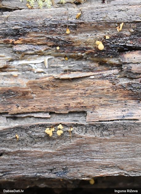 Raivo, nebūs Chaenotheca furfuracea, bet gan C.brachypoda (dabisku mežu indikatorsuga). C.furfuracea ir ar izteiktu laponi, daudz lielāki aķ un košāk zaļa krāsa