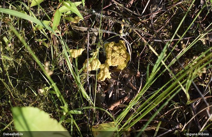 Šis varētu būt tāds piemērs, kad sāk dzīvi uz koksnes un tad uzplešas virsū sūnai. Man izskatās, ka šai vajadzētu būt rufai, nu tāds sarkans. Pat divi perīdiji 2. foto no apakšas tīri pārliecinoši - dzeltenais plānais un tad pa virsu malā var redzēt tumšo.