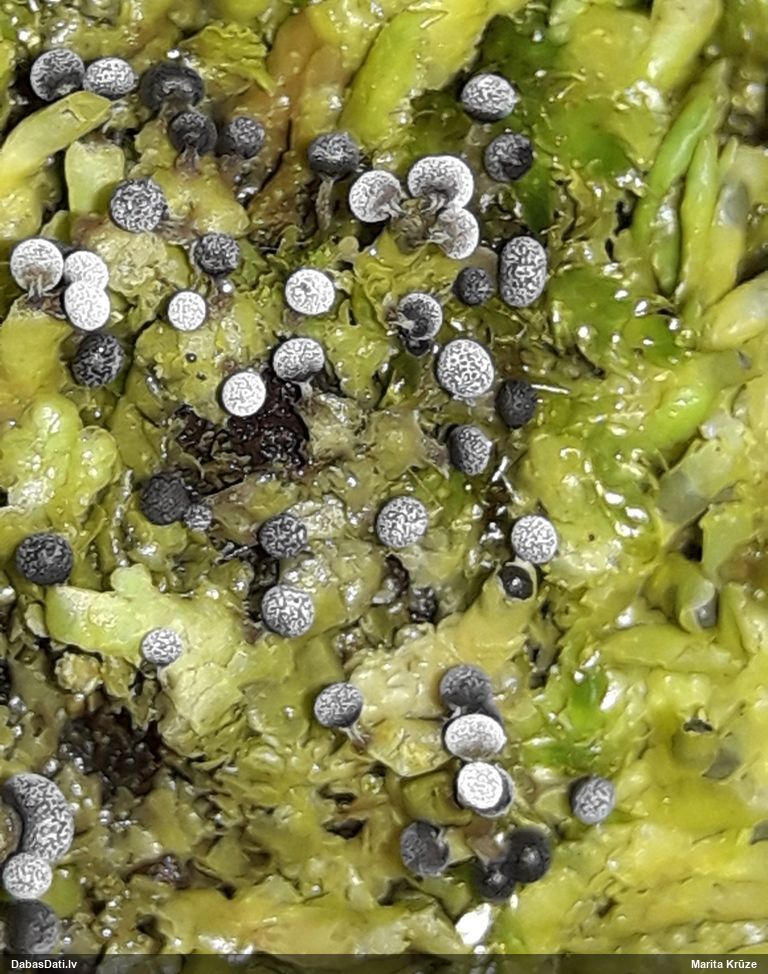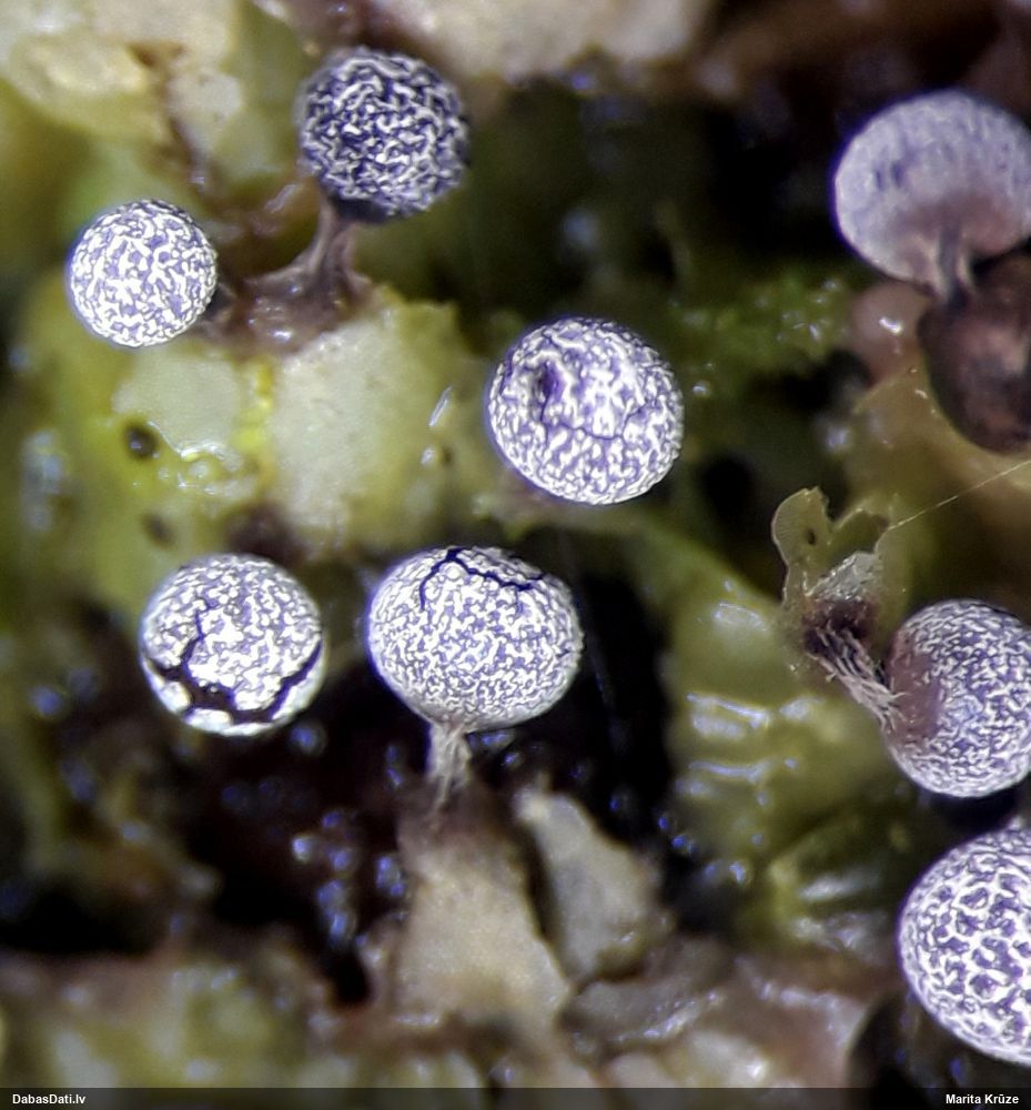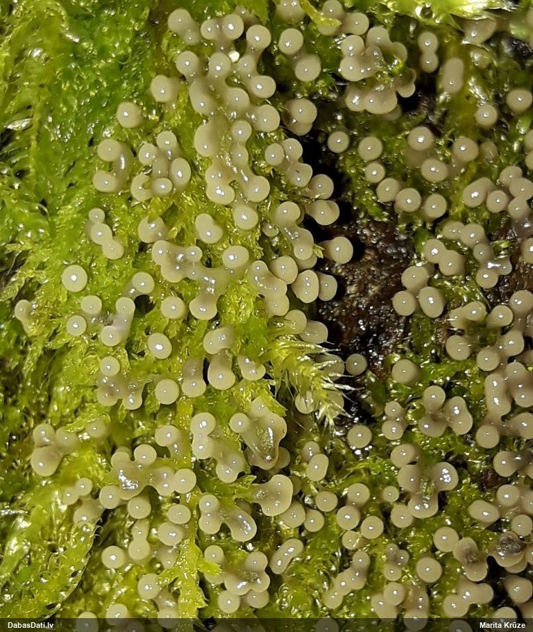 Paldies, Raivo! Ar acu gaišumu man arvien sliktāk, bet mikroskops palīdz. Jā, gribēju teikt, ka paraugam, ja vien nav kāda jutīga atradne, kurai drīkst ievākt tikai mazu gabaliņu, vērts ievākt lielāku gabalu, jo gļotsēnēm patīk kompānija. Un mikroskopa mazajos palielinājumos ar sānu papildus apgaismojumu ir vērts rūpīgi "izstaigāt" visu paraugu. Arī ķērpjus un interesantas sīksēnītes tā var atrast, ko dabā nepamanītu. Ar kriksītēm ir dažādi - pirmās es tā arī tikai citu sugu paraugos pamanīju, bet vēlāk redzēju arī dabā kriskīšu plantācijas - ja to ir daudz, tad var pamanīt jau dabā. Uz sūnām gan ir ekstrēms gadījums, dabā droši nepamanītu, arī eksemplāra noņemšana no sūnas nebija pārāk veiksmīga, tāpēc par noteikšanu mazliet šaubos (sporām mazliet cits tonis). Bet pagaidām citas hipotēzes nav (un konkrētā eksemplāra arī vairs ne).