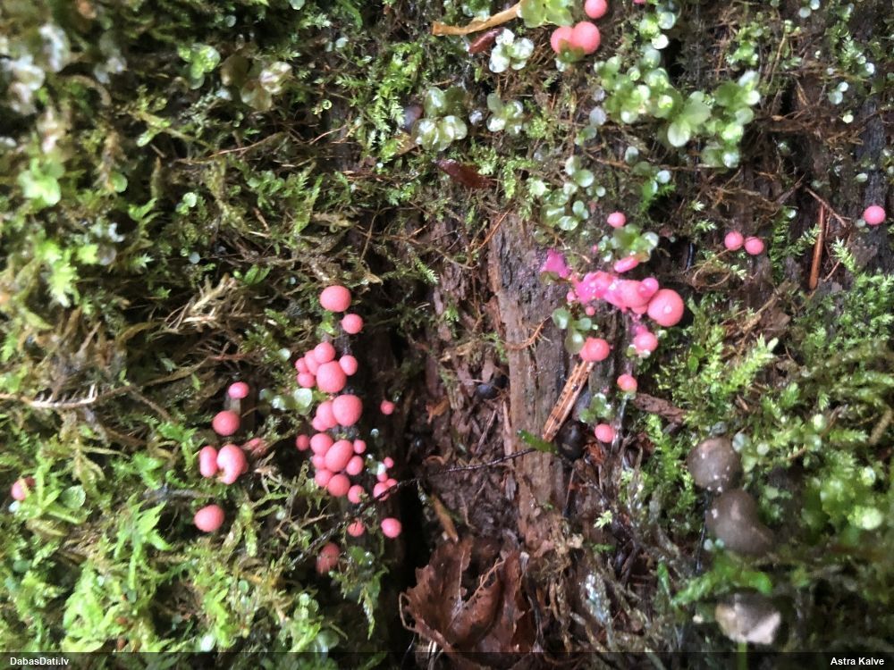 PiezīmesLielā skaitā uz vecu egłu kritalām. Taja pašā mežā citā vietā ir pagājušā gada atradne. Sīkākas nekā koksnes vilkpienaines.
