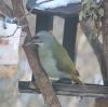 Diemžēl bildes kvalitāte, piezūmojot no tel., ir švaka un negribēju arī izbaidīt putnu barošanās procesā, bet mugura zaļa, krūšu daļā - pelēks/gaišs. Pēc i-netā atrastā apraksta varētu būt mātīte, jo nebija "sarkanie vaigi"