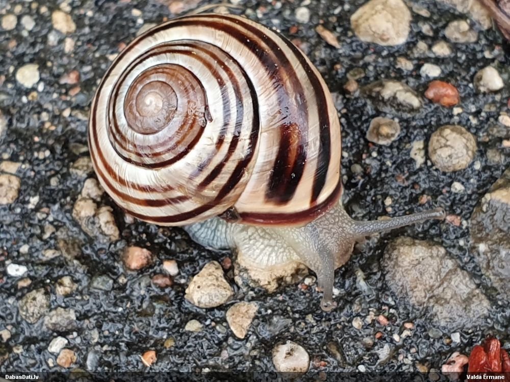 Pēc foto noteica Arturs Stalažs (nepieaudzis, pēc raibumiem nevar sajaukt ar Helix pomatia mazuļiem)
