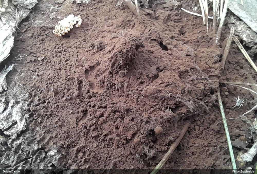 Skatoties uz nelīdzeno virsmu, var būt grubuļainais Fuligo luteonitens, bet droši to varētu pateikt mikroskopijā pēc sporām