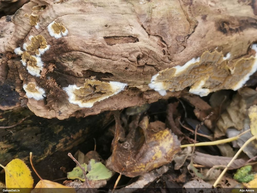 Želejas flēbija normāli uz lapkokiem. Šeit drīzāk Skeletocutis amorpha. Bet nu īsti nevar saprast