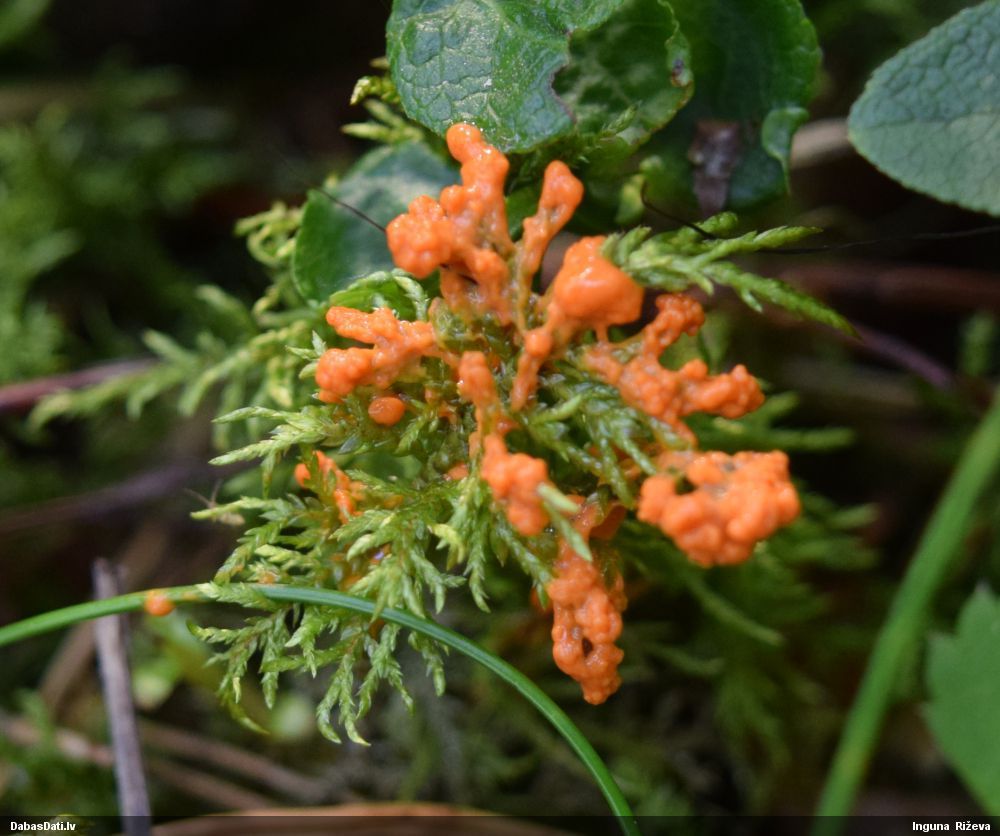Skatoties uz nelīdzeno virsmu, var būt grubuļainais Fuligo luteonitens, bet droši to varētu pateikt mikroskopijā pēc sporām