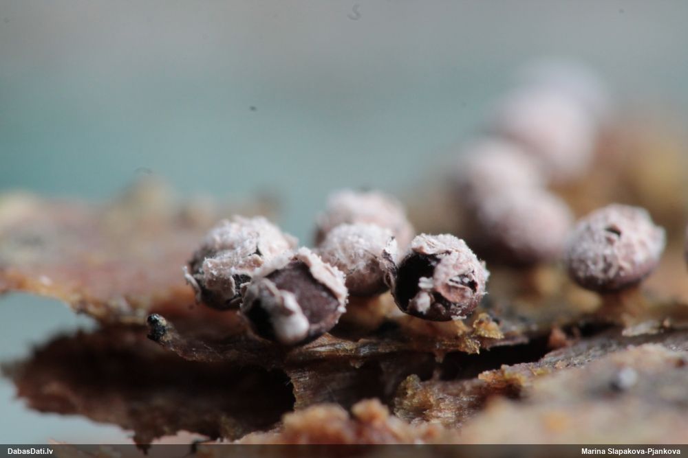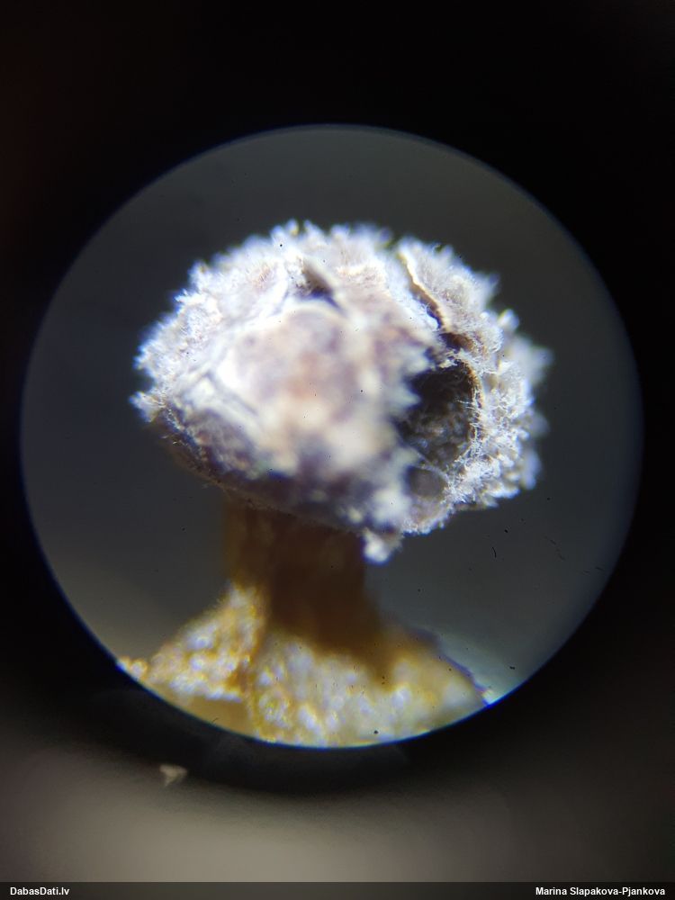 Šis man pašai sanāca pārsteigums. Ievācu paraugu ar domu "varbūt tur ir gļotsēne", dodot varbūtību apmēram pusprocentu, ka ir. Bet no mikroskopijas starp galīgi vecām sporām izdevās atrast ne tikai dažas labas, bet, galvenais, arī perfektus kapilīcija fragmentus, no kura suga, vēl kopā ar sporu pazīmēm, nosakāma nešaubīgi.
