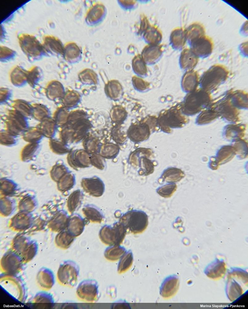 Tai vajadzētu būt B.panicea, vajadzēja vismaz vienā foto fokusu uz sporu virsmas rakstu, jo sporām jābūt ar tumšāku kārpu grupām. Te tās neredz.