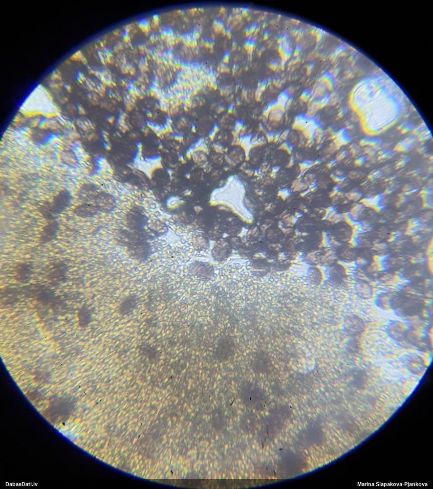 It kā varētu būt C.oregana, bet granulām jābūt 2-3,5 mkm. Te granulas nav mērītas, bet, salīdzinot ar sporām, šķiet, ka ir mazākas, tomēr grūti pateikt.