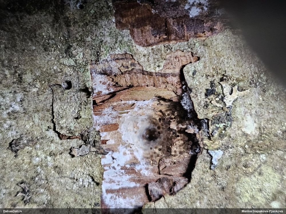 Raivo, nebūs Chaenotheca furfuracea, bet gan C.brachypoda (dabisku mežu indikatorsuga). C.furfuracea ir ar izteiktu laponi, daudz lielāki aķ un košāk zaļa krāsa