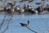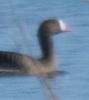 PiezīmesKārtīgi apskatīt nesanāca, bet liekas ka mazā. Binoklī ieraudzīju aiz krūmu joslas, kā izpeldēja atstatus no citām. Piesaistīja pēc formas un lielā baltā plankuma. Sāku uzreiz fotografēt pa krūmu spraugām. Pēc vairākiem foto baru kaut kas sabaidīja kārtējo reizi, un visas bija prom. Bildē liekas ka dzeletenais gredzens arī ir.