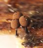 Pieliku vēl četrus foto: augļķermeņi no metāliskās krāsas paliek brūni; atradu kaut ko līdzīgu kolumellai, bet stiprāk uzpūšot tā "lodīte" izvēlās arā, atstājot iedobi; kātiņa galā palika neliels paplatinājums.