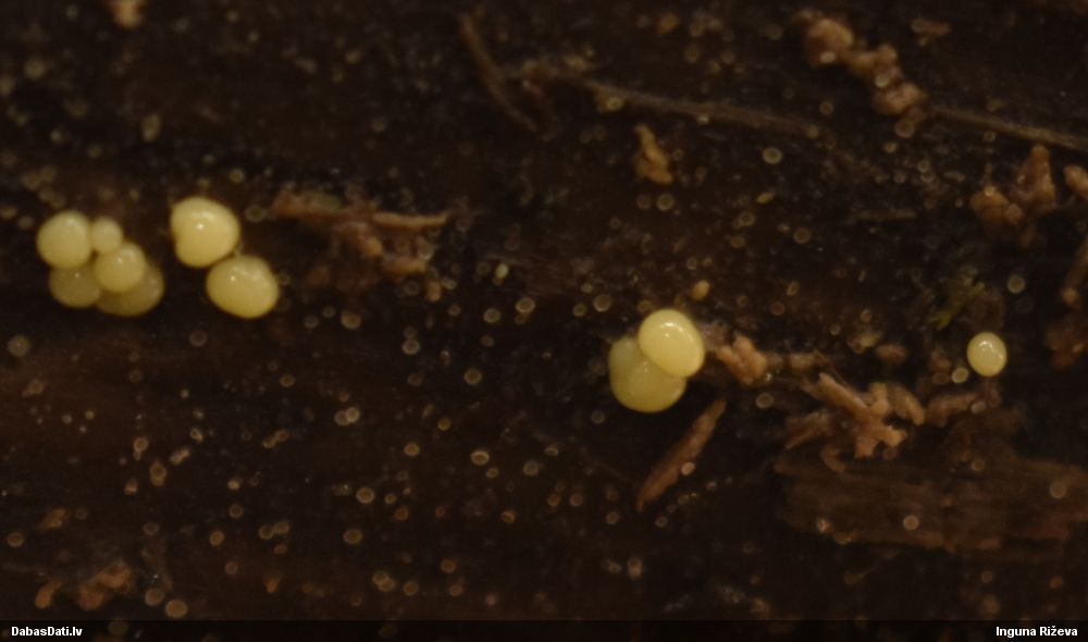 Skatoties uz nelīdzeno virsmu, var būt grubuļainais Fuligo luteonitens, bet droši to varētu pateikt mikroskopijā pēc sporām