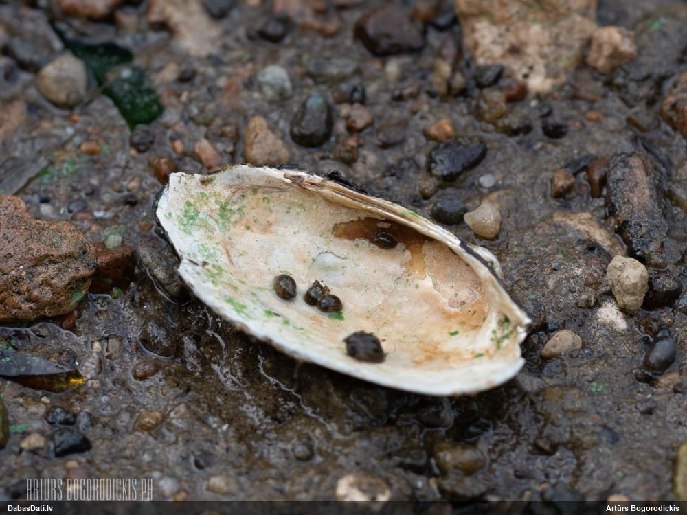 Arturs Stalažs noteica pēc attēla: augšējā pa kreisi Viviparus sp., varētu būt Viviparus vivioparus, abas pārejās tajā pašā rindā Cerastoderma glaucum; otrajā rindā no augšas, visticamāk, Dreissena polymorpha, vadoties pēc čaulu izskata un ievākšanas vietas, un 100% tas attiecas uz 2. čaulu (Mytilus trossulus čaulas ir zilganas un plānas un reti tā nodēdē, kā 1., 3. un 4. čaula – parasti šādi izskatās apbružātas Dreissena polymorpha čaulas); 3. rindā no augšas 3. un 4. no kreisās puses, iespējams, nepieaugušas Mya arenaria, būtu jāredz čaulu iekšpuse; 4. rindā no augšas četras no labās puses Rangia cuneata; visas pārējās Macoma balthica.