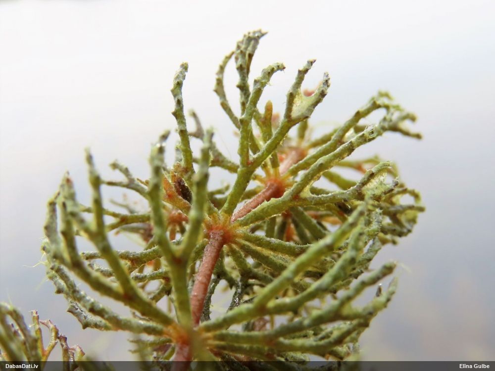 Raivo, nebūs Chaenotheca furfuracea, bet gan C.brachypoda (dabisku mežu indikatorsuga). C.furfuracea ir ar izteiktu laponi, daudz lielāki aķ un košāk zaļa krāsa
