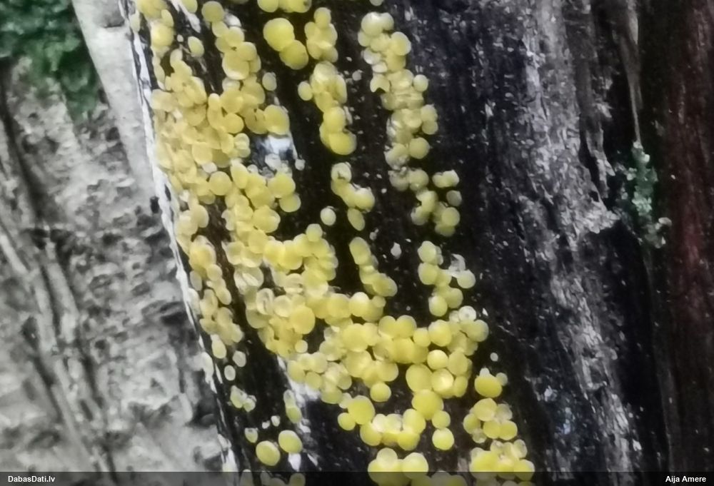 Želejas flēbija normāli uz lapkokiem. Šeit drīzāk Skeletocutis amorpha. Bet nu īsti nevar saprast