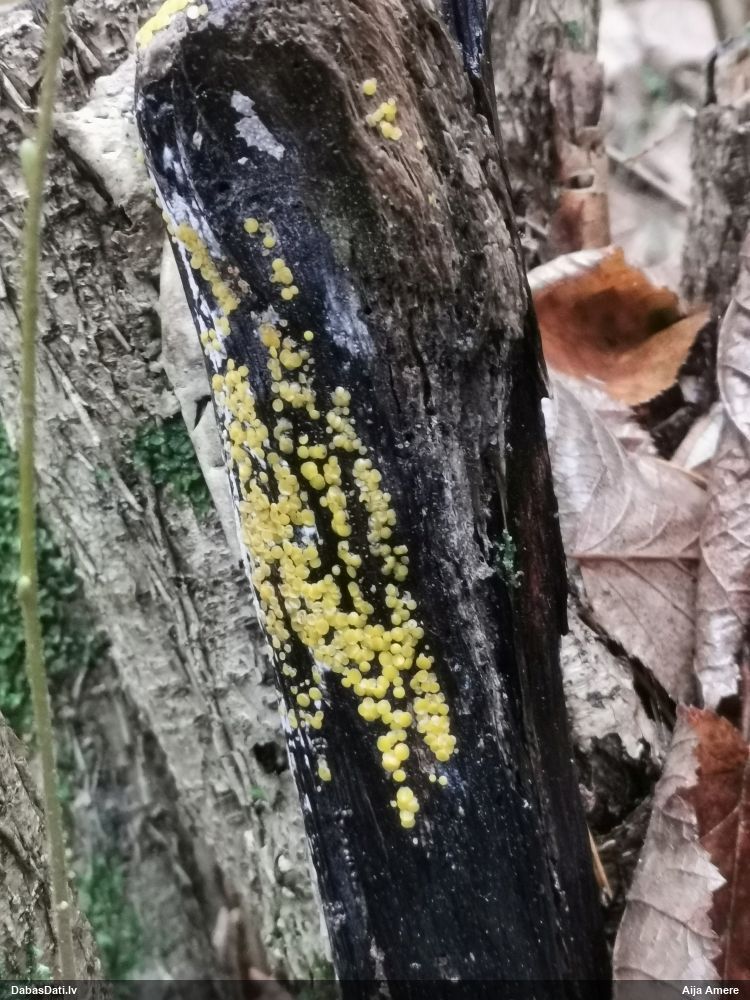 Šis ir ļooti interesanti! Foto nav vēl nobriedušas. Vai ir vēlāk redzētas/ievāktas? Jo Ventspilī šogad bija daudz Badhamia foliicola novērojumu, bet ne nu gluži novembrī un teju pludmalē(?). Būtu ļoti interesanti precīzi noskaidrot, kas tas ir.