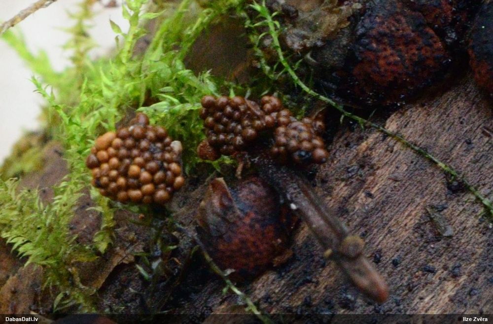 Šobrīd divas versijas - Physarum psittacinum un P.braunianum. Bez paraudziņa te skaidrīzā netiks, bet biotops interesants