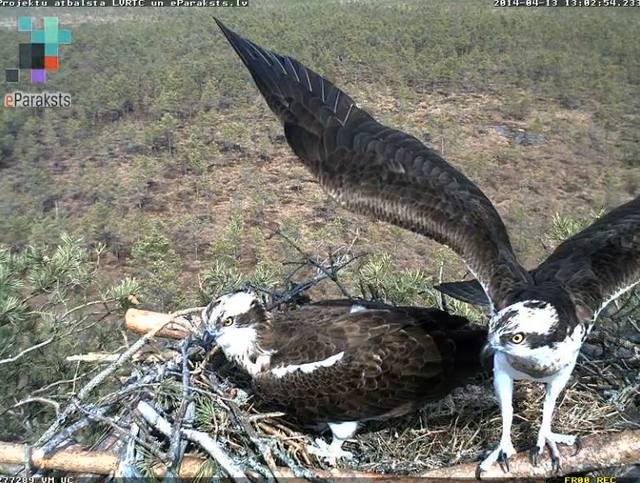 Jūras ērgļa ligzda atrodas pie Lubāna ezera, zivjērgļi mājo Viesītes apkārtnē, bet melno stārķu ligzda atrodas Kurzemes pusē. Patlaban jūras ērgļu ligzdā tiek perētas divas olas, no kurām pirmajai pēc ornitologu aplēsēm būtu jāšķiļas maija sākumā. Ar kameras palīdzību iespējams sekot līdzi jūras ērgļu ģimenes rosībai - mātīte galvenokārt perē, tēviņš viņai pienes zivis - šobrīd lielākoties līdakas. Savukārt zivjērgļi ligzdā aktīvi gatavojas pēcnācēju radīšanai, bet melno stārķu ligzdā patlaban nav redzams neviens putns. Līdz šim tēviņš kamerās tur manīts divas reizes – 5. un 6.aprīlī.