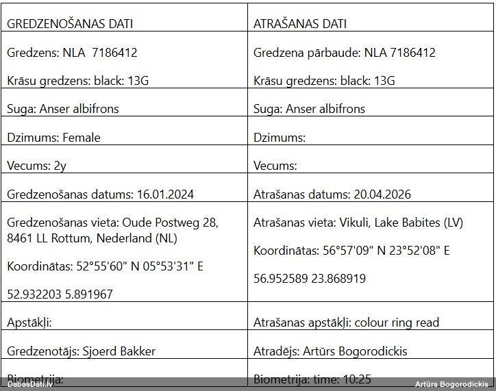 Ziemelmeita Paldies,Julita! Paraugs ir, jāmeģina atrast brīdis pie mikroskopa. Ziemelmeita Amanda Jāredz tuvāk (kaut vai izkadrēts šis pats attēls) - varbūt tumšā eļļasvabole (Meloe proscarabaeus) Ivars Leimanis Aleksejs Šarīpins 17.aprīlis, 23:37 VijaS Nē, nenobrieda līdz sporām, nesaglabāju. VijaS Bekuvecis 17.aprīlis, 15:43 InŠu 17.aprīlis, 11:47 mufunja mufunja Man kaut kā neizskatās pēc T.varia. Pēc pēdējā foto spriežot, - varētu būt paraugs? Jā, šis novērojums ļoti interesants. Žēl, ka nav skaidra plazmodija piederība. Nav pārliecības, ka te ir divi vijumi elaterai VitaP. Mežiņā pie mājām, kļavā ieurbtā caurumā (sulām). adata Siona erihir erihir Paldies, and sorry! I am struggling with latin-Latvian, species is of course leucopsis. Mežirbe777 Jāatdala, gan jau nav parastais Lietuviete Vladimirs S Ziemelmeita Paldies, Julita, par skaidrojumu. Noteikti nav Chaenotheca stemonea. Tā ir ar zaļu laponi, brūnu sporu masu. Jābūt vēl vienam simbolam, kas lasās perpendikulāri redzamajiem! Ziemelmeita Tad jau iespējams ka medainā arī apaug. Es arī īsti nezinu vai tā ir. adata Hmm, pilienīšu dzimta vien ir, par to nebiju aizdomājusies. Ko Julita teiks? adata Skaista! Šķiet, sporu masa varētu būt dzeltena. Ziemelmeita Varbūt arī Poecilus versicolor adata Teiktu, ka medainā bumbulīte. Redz vertikāli izstieptus augļķermeņus (ne pilienveida). Bet ievākts jau nav? Vērtīgs, jo ar attīstību Ziemelmeita adata Gredzenots kā pieaudzis putns 14.11.2021. Gdynia: Skwer Plymouth, POMORSKIE, POLAND. Pēc foto noteica Valdis Pilāts. Balts vēders kā klaidoņpelei, svītra pār muguru - svītrainā. Ziemelmeita adata zane_ernstreite Paldies, Julita, par apstip[rinājumu! ligausis zane_ernstreite Jā, tūlīt to arī daru, jau procesā ))) Ja novērojumu neliek caur aplikāciju, tad bildes jāpievieno pēc tam. T.i., tagad. a.b Gredzenošanas vieta: Bišumuiža, Rīga Gredzenošanas datums: 22.05.2025 a.b Amanda Vīksna It kā pēc sila strazda izskatās gints Ziemelmeita Garkāta agrenīte (Microstoma protractum). Ziemelmeita Mežirbe777 adata Te sporu mākonis ar brīviem galiem, nevis kā kamols, tāpēc nebūs vāles/apkaklītes Žēl, ka pēdas nospiedums nav nofotografēts. J. Ozoliņš atzina par lāča pēdu. J. Ozoliņš atzina par lāča pēdu. J. Ozoliņš atzina par lāča pēdu. Jānis Ozoliņš šo novērtēja kā "izcili pareizu ziņu". No šīs var mācīties, kā fotografēt lāča pēdas. adata Iveta, es nezinu :), tur jau izskatās pēc sporām. Sēnes šobrīd nepētu, nav laika. adata Nu vai tad šis nav Sorocybe resinae micēlijs, uz kura mēdz augt gļotsēne? adata megemege Bekuvecis 10.aprīlis, 11:47 kamene marsons Un, jā, mans atradums arī pie upes! Amanda zemesbite zemesbite megemege Kas par zosi? Interesanti tumšs knābis! Amanda joonc joonc V.Grigorjevs man liekas, ka tagad uz visiem laukiem tūkstošiem visādu zosu... Vīksna V.Grigorjevs Paldies par stāstu, ļoti interesanti! Jaykay5 09.aprīlis, 18:50 Ziemelmeita Ziemelmeita Paldies par labojumu! Dzeltenās sporas samaisija galvu. marsons 2025.gada pavasarī-vasarā neatradu. Skatīšos arī šogad. eera 09.aprīlis, 15:43 Katru dienu uzturas barotavā, kamēr viss no rīta noliktais apēsts . Vīksna Kārlis Levinskis 09.aprīlis, 13:44 Kārlis Levinskis 09.aprīlis, 13:44 Kārlis Levinskis 09.aprīlis, 13:44 Kārlis Levinskis 09.aprīlis, 13:43 Kārlis Levinskis 09.aprīlis, 13:28 Vīksna Šogad pirmās sarkanblaktis dārzā, lai gan parasti dārzā agri un daudz, jau domāju, ka nepārziemoja. adata Šīs prot skaistas pārlaist ziemas sezonu un sagaidīt pavasari! adata Vairākas galviņas uz pagaras kājiņas, sporu mākonis dzeltens (ne sarkans, kā šunu daudzpilītei). adata Parasti mazie ērgļi pavasarī uzdzied :) adata Visticamāk kāda inermīzija vai bisonektrija. Ziemelmeita Paldies,Ansi, par ieguldīto laiku sūnu noteikšanā. Lemmus Vīksna Vīksna Lemmus Lemmus ja netiek dalīts, tad pēdējo foto vajag izmest mazās dzeltenās ir kāda pilienīte. Varbūt raibā lampīte. Bez mikroskopēšanas pagaidām droši nepateikšu Ziemelmeita Paldies,Ansi, par labojumiem un sugu noteikšanu! Ja uz apses kritalas, tad minētu, ka Physarum straminipes Man šķiet, ka ir arī ciešākas grupiņas, 1. foto kreisajā malā. megere Zigurds Krievans Zivju gārnis 06.aprīlis, 12:18 Izskatījās pēc lietuvaiņiem, ierspējams kuitalas. megemege Paldies, Amanda! Es pārbaudīšu vai esmu pareizās bildes salikusi, tad arī jāizlabo! Kiwi Amanda a.b Ja, to jau biju ieziņojis atsevišķi. mufunja Paldies, Julita. Tev taisnība. Vienīgais, ka nav saaugušas grupās . megemege https://ebird.org/species/bahgoo megemege Labdien! Tā gaišā zoss ir Kalna zoss ( Anser indicus) . Gredzenots 27.06.2018 Kalnvēzes, Viesatu pagastā valters zaļš un zils augšā, uz kreisās kājas abiem baltajiem gredzeniem bij kaut kāda kaslīte. Amanda Kiwi Varētu būt lazda, sazāģēti sprunguļi zemē. zemesbite mufunja Derētu kāds biotopa foto, ja būtu, vai vismaz apraksts Tie laikam tie sēra izgulsnējumi, nezinu, kur tādus likt Paldies, tad jau viss sakrīt :) Ziemelmeita Satrūdējusi kritala mežā, nav dēļi. Iespējams, egle, jauktu koku mežs. Ziemelmeita Visdrīzāk Koksnesmušas Xylophagus sp. kūniņa Ziemelmeita Jā, zem mizas uz nokaltušas priedes. Lemmus Ja novērojums ielikts ne no aplikācijas, tad foto vajag pievienot pēc tam, t.i., tagad. gunitak gunitak spiigana Tev bija taisnība, nebija neievērotā, bet Smita vālenīte, kas reti tiek noteikta :) adata Julitai taisnība, sēne. Pieskaroties vālītes put, kātiņos nelūzt. Ļoti jauks paraugs. Nemikroskopēju (ceru kādreiz..), bet pēc ārējām pazīmēm izskatās pārliecinoši :) Physarum leucophaeum pēc kopskata ļoti ticama versija Labs. Nez vai ievākts?! Vēl Didymium serpula izskatīšanā Jā, varbūt zeltmatu Physarum flavicomum Man velk uz lākturītēm 