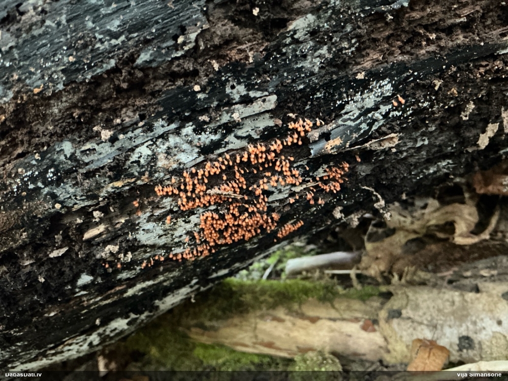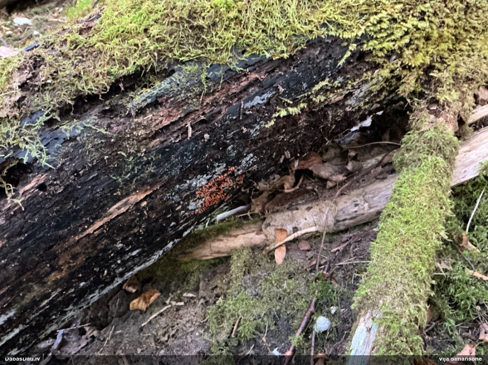 Domāju to Sorocybe resinae, ja tā, tad esmu soli tuvāk mērķim, nu zinu, kā izskatās un kur meklēt. Gļotsēnītes klāt gan nebija.