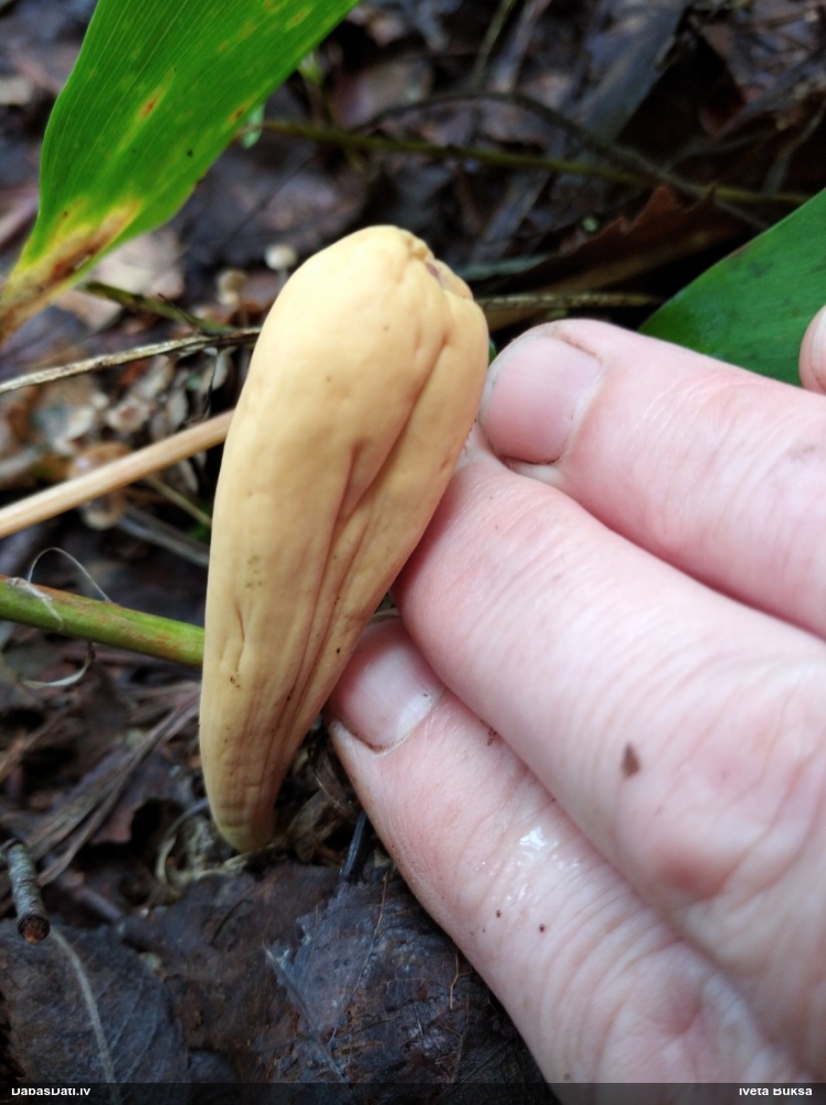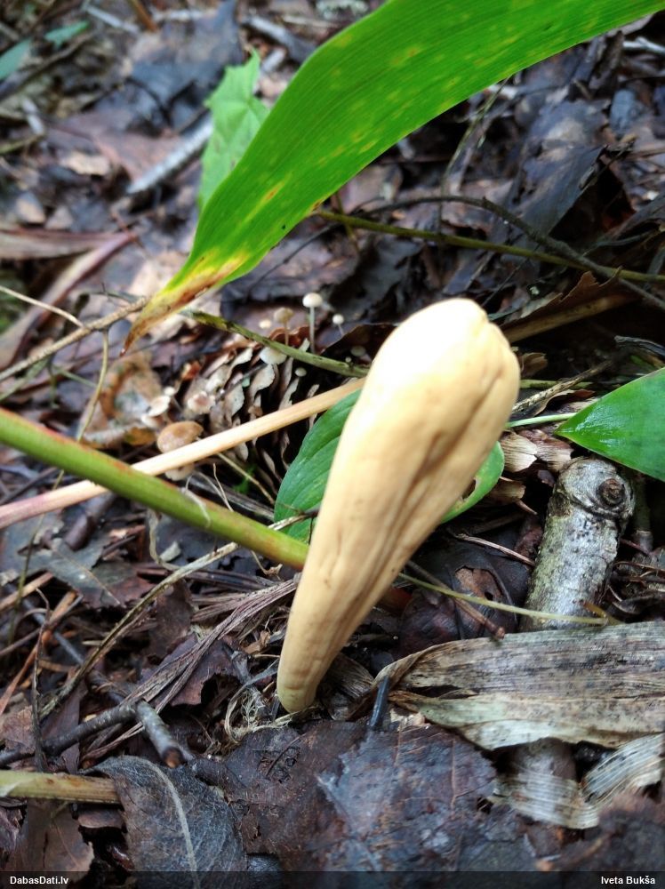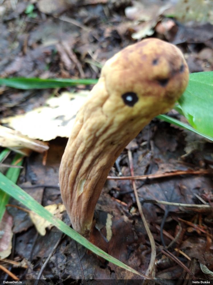 Teiktu, ka medainā bumbulīte. Redz vertikāli izstieptus augļķermeņus (ne pilienveida).