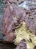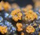 Man pēkšņi radās ideja - vai tur bija nu ļoti mitrs mikroklimats, egle ar melnalksni? Hipotētiski tādas dzeltenas var būt Diachea muscorum. Te bilde ir mazliet līdzīga: https://fr.wikipedia.org/wiki/Fichier:Craterium_muscorum,_Trawscoed,_North_Wales,_Aug_2016_-_Flickr_-_janetgraham84.jpg