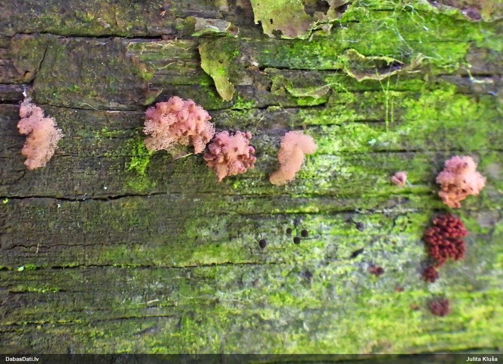 Šobrīd divas versijas - Physarum psittacinum un P.braunianum. Bez paraudziņa te skaidrīzā netiks, bet biotops interesants