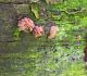 Man pēkšņi radās ideja - vai tur bija nu ļoti mitrs mikroklimats, egle ar melnalksni? Hipotētiski tādas dzeltenas var būt Diachea muscorum. Te bilde ir mazliet līdzīga: https://fr.wikipedia.org/wiki/Fichier:Craterium_muscorum,_Trawscoed,_North_Wales,_Aug_2016_-_Flickr_-_janetgraham84.jpg