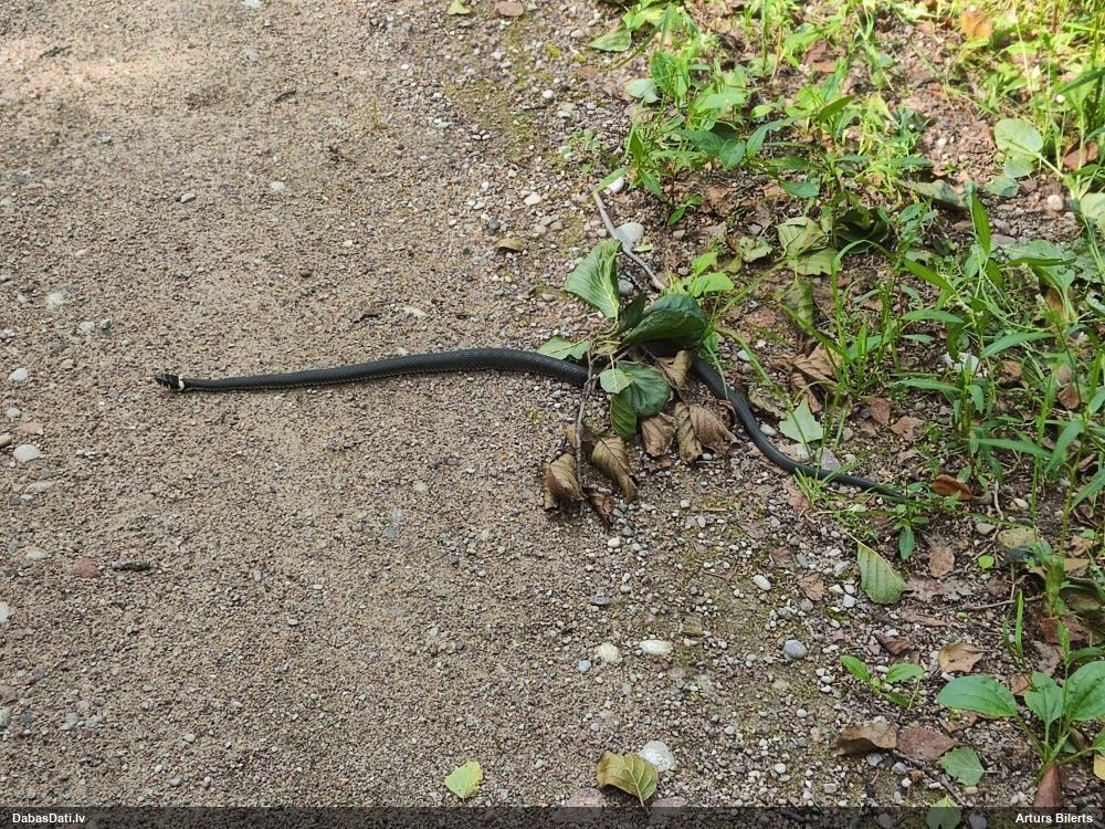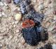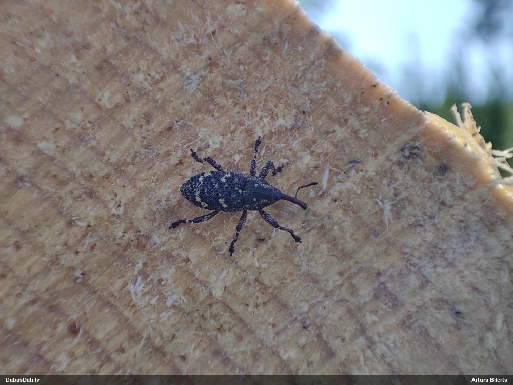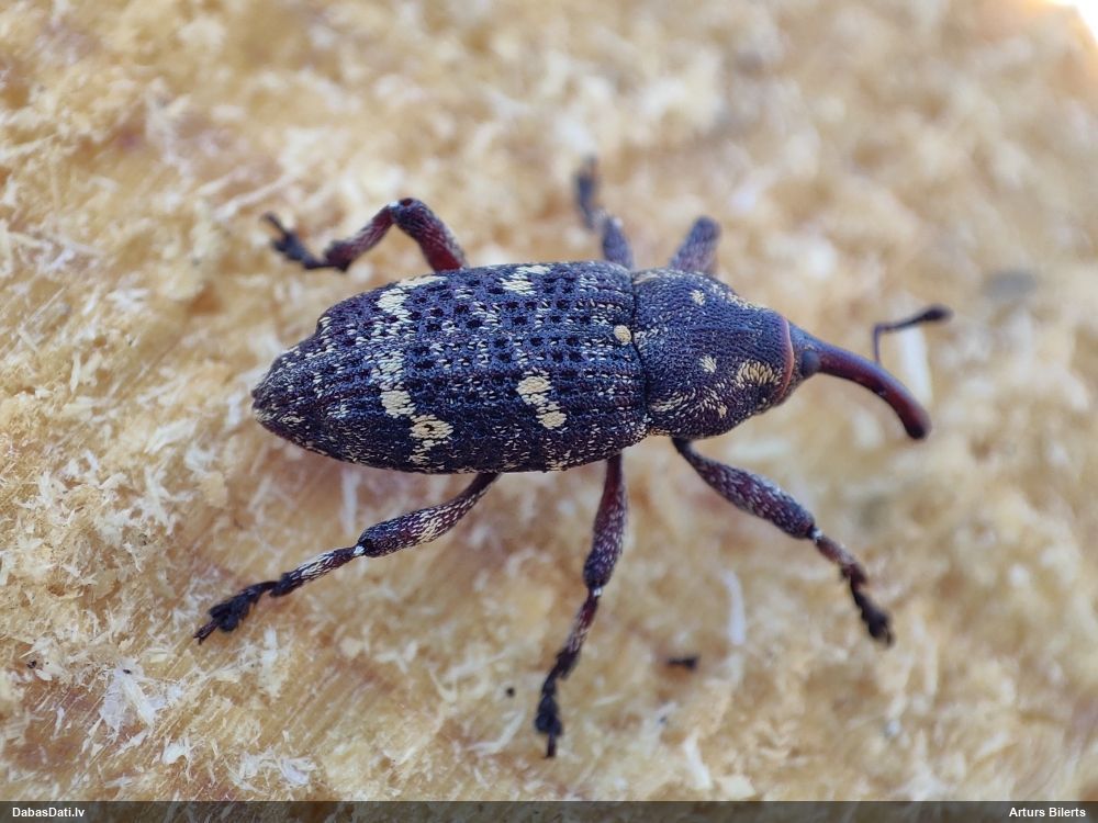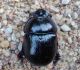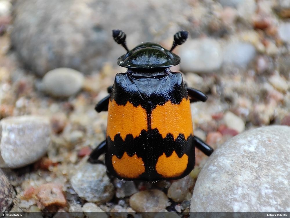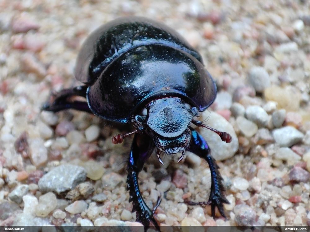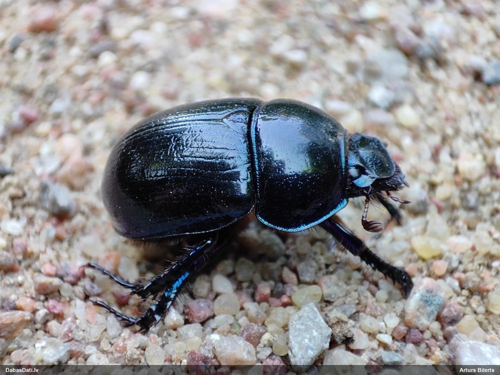 Jāredz tuvāk (kaut vai izkadrēts šis pats attēls) - varbūt tumšā eļļasvabole (Meloe proscarabaeus)