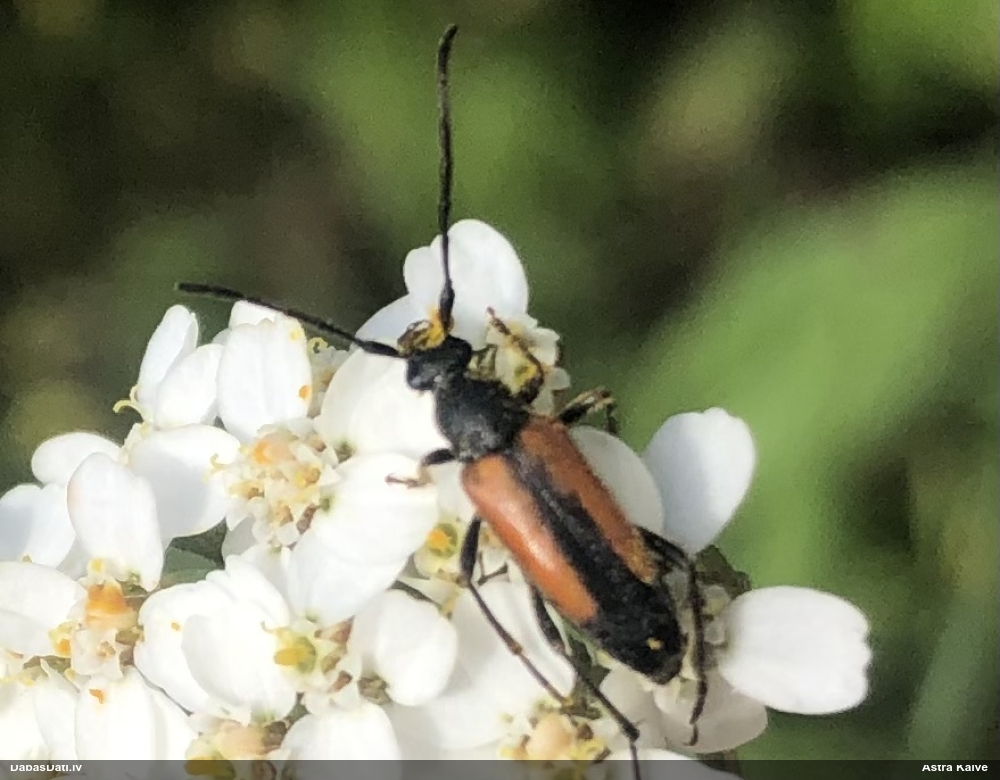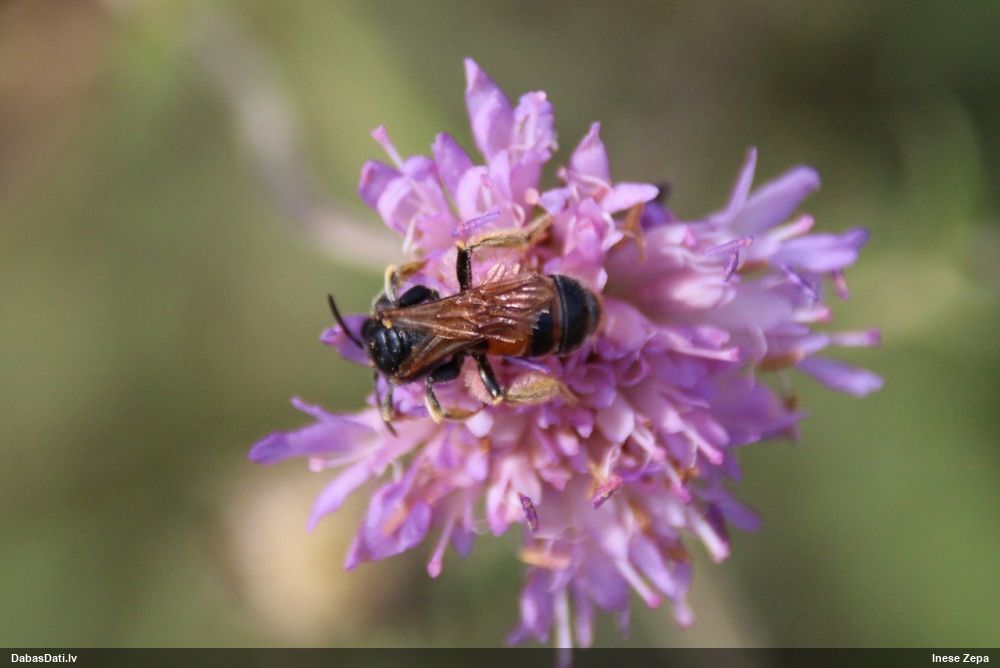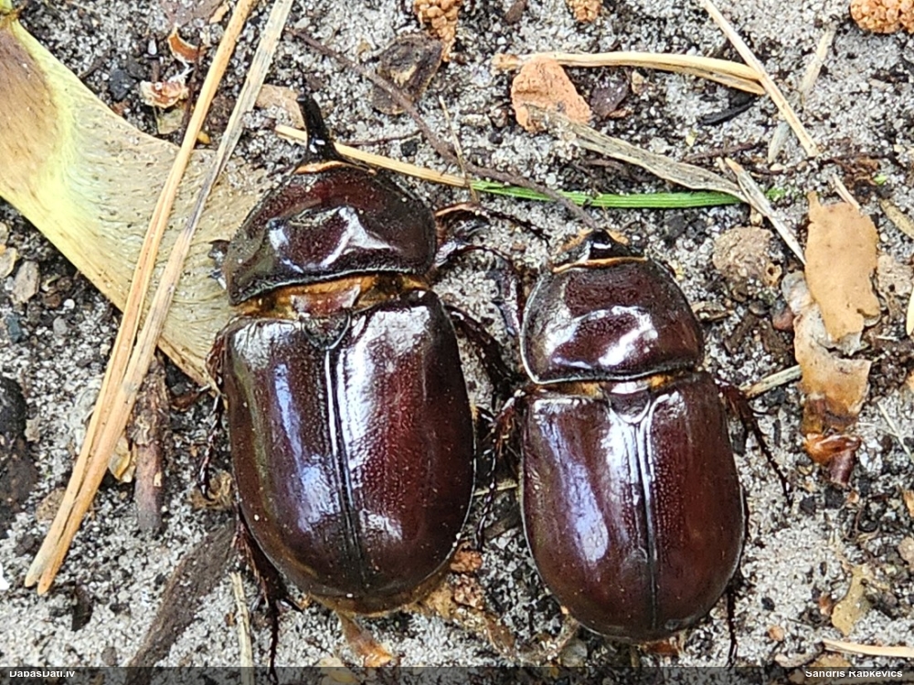 Jāredz tuvāk (kaut vai izkadrēts šis pats attēls) - varbūt tumšā eļļasvabole (Meloe proscarabaeus)